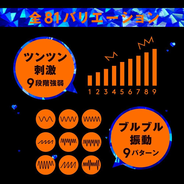プニッと柔らかなソフト素材が優しくフィット!ツンツン刺激9段階強弱×9種類の振動パターン、合わせて全81種類の豊富な刺激を堪能♪IPX7等級&45db仕様で、遠隔から操作できるコントローラ付き。