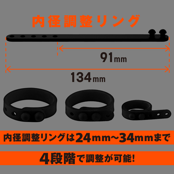 内径23mmの小サイズ、26mmの中サイズ、30mmの2連リング、そして自分の身体に合わせてサイズ変更できる内径調整リングの4個付属。