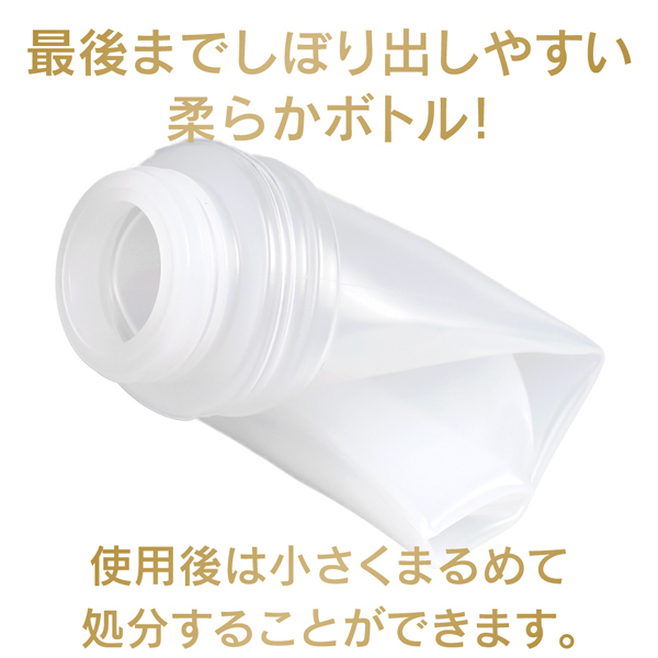 空になったボトルは丸めてコンパクトに捨てる事が出来ます。