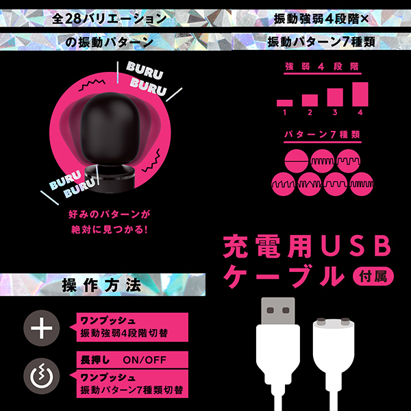 押し当てても痛みが少ない柔らかなソフトシリコン素材を使用♪全28パターンの多彩な振動バリエーションで優しい刺激から壊れちゃう刺激まで全部楽しめます。
