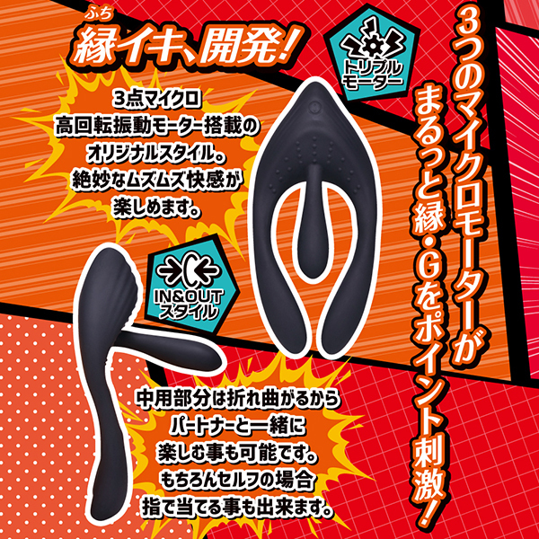 3つのマイクロモーターが外側とGを絶妙に刺激する!独特のムズムズ感が楽しめて、一人でもパートナーとでも楽しめる形状と肌触り滑らかなプレミアムシリコン素材が自慢♪IPX6相当の防水性能だからしっかり洗えて濡れながら使用可能!基本的には男性がコックリングとして装着し、Gスポットを振動刺激しつつナカも振動責めするという使い方がお楽しみ頂けます♪電源はUSB充電式でリチウムイオン電池を内蔵!プレイを邪魔しない静音設計でしっかりと満足させてくれます。