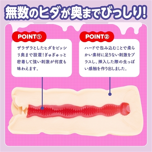 極端に硬さの違う素材によってまるで生きているかのような、うごめく感触をお楽しみください。