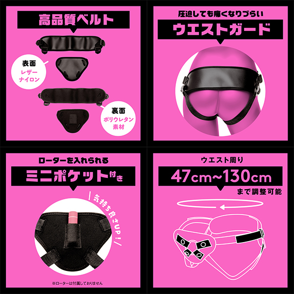 ペニバンの裏にはミニポケットが付いていてローターの装着が可能、気持ち良さがUP!勃たない時のフォローに!椅子や抱き枕に装着して推しとの妄想H、見せつけプレイに大活躍!(まわし仕様じゃないので装着可能です)胸元に装着して直視させる変態プレイも♪ウエスト周り43cm〜130cmまで調整が可能です。