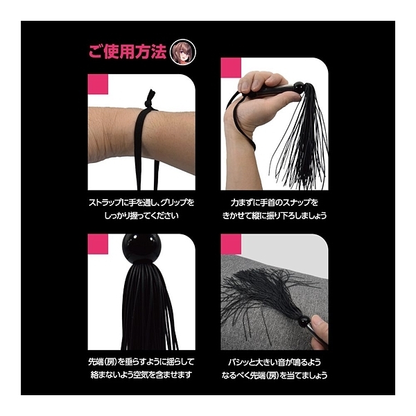 遊びのつもりでビシバシしていると、いつの間にか鞭責めの魅力に惹かれてしまうかも!●カラー:ブラック