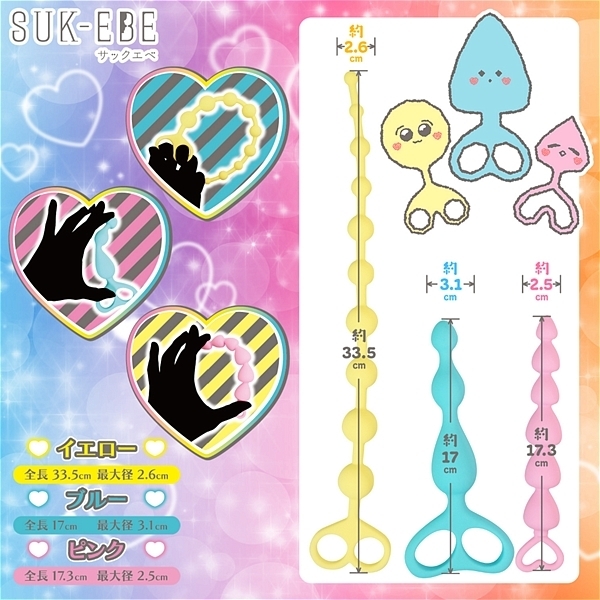 仕様:パッケージ:22.5×11.5×3.5cm 本体:ピンク(17.3×2.5cm)、ブルー(17.0×3.1cm)、イエロー(33.5×2.6cm)