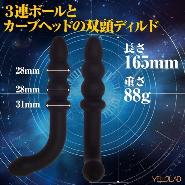 3連ボールとカーブヘッドの双頭ディルドは初心者でも安心して直感的な操作で、心地よくほぐすことができる最適なアイテムです。