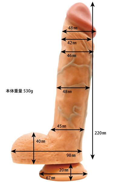 底面には壁や床に貼り付けられる吸盤付き!長さ約24cmの巨根を是非ご体感ください。