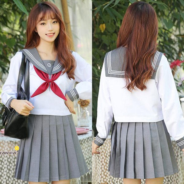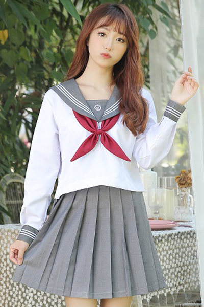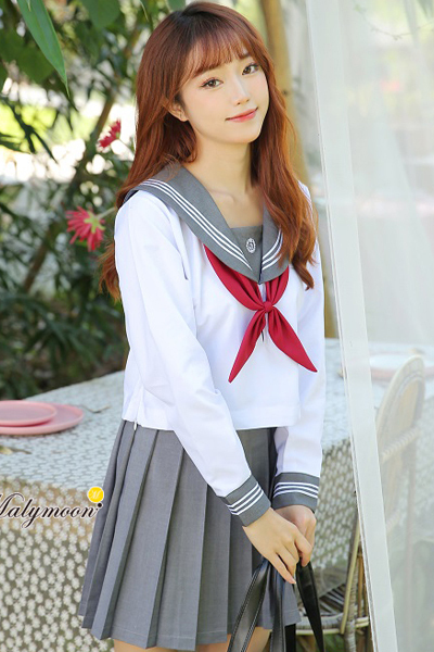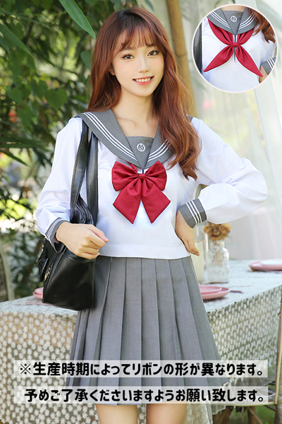 HOME > コスプレ衣装 > セーラー服・制服 > <malymoon>赤リボン長袖セーラー服(グレー)